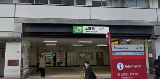 待ち合わせ場所は、JR上野駅入谷口出て左へ進み、ス〇イルガレージ向かい側付近辺りに送迎車が待ってくれています。