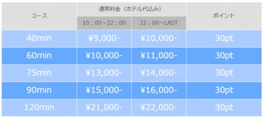 オールヌードをはじめ生フェラ、ディープキス、全身リップ、受身、ローションプレイ、素股、口内発射などは基本ヘルスコースなるので、基本料金で一通りのプレイは可能です。