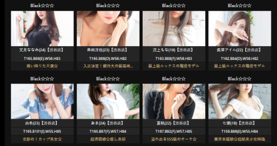 出勤表をチェックすると、さすが高級デリヘル。キラキラ感のあるゴージャスな女の子ばかり。プラチナ、ブラック、ラグジュアリーとランク分けされており、最高ランクはラグジュアリー。でもさすがに手が出る金額ではありません…。