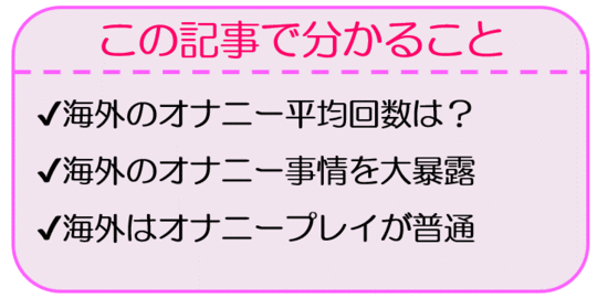 なんとなく海外は性に開放的なイメージがあるのではないでしょうか。実際に海外のオナニーとは日本とどう違うのか、平均回数に違いはあるのかなど気になる海外のオナニーについて徹底解説。海外在住だからこそ分かるすべてをお伝えします。