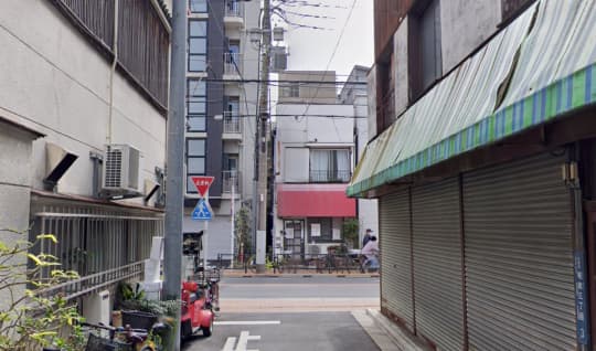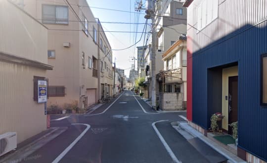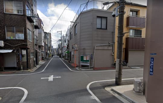 2本目十字路。目印がわかり難いですが、画像右壁に「竜泉3丁目33」とありますの。