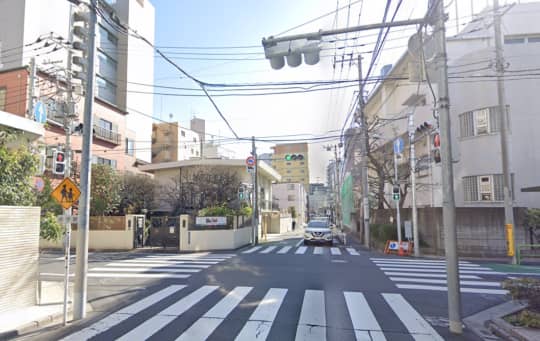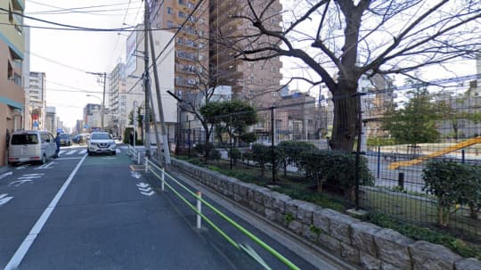 公園横を過ぎて、十字路2本目のここを左に曲がってください。