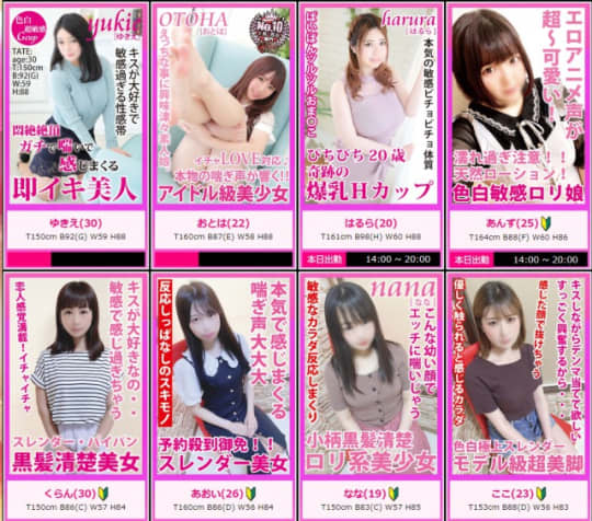 アイドル級にカワイイ美少女や、予約殺到の天然パイパン娘、見た目は清楚なのに敏感ボディの持ち主など、色んな特徴を持っている女の子が多数あなたの指名を待っています。