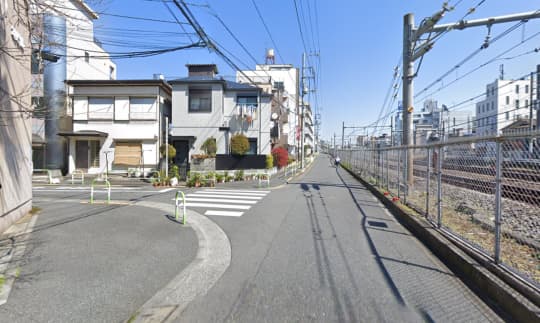 次に画像左の方へ、線路沿いをひたすら真っすぐ進みます。