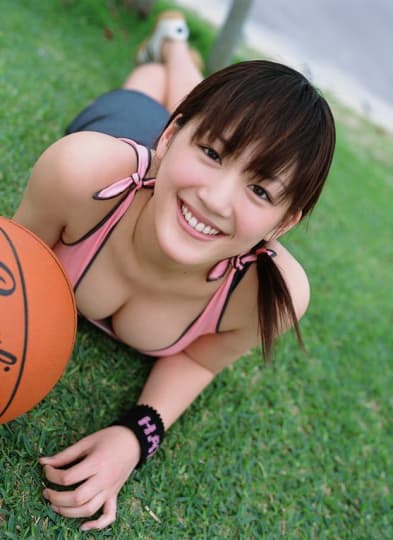 スポーツブラにしっかりと包み隠されたバストですが、それでも隠し切れないぐらいの豊満さですから、まさに「明るいエロ」の代名詞と言えるぐらいの一枚に仕上がっています。
