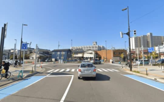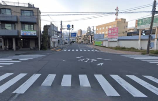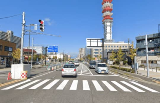 駅側の横断歩道から見ると、このような情景です。
