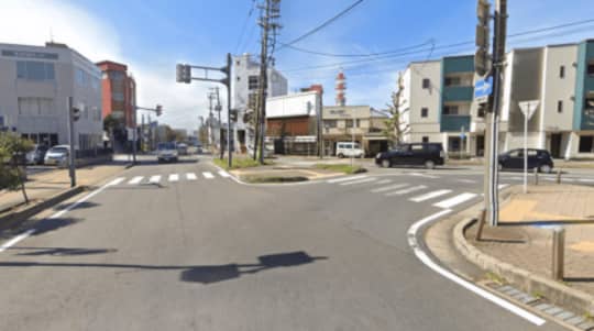 交差点を越えて少し歩くと右側に「コインパーキング」がみえますので、それを越えてすぐ右に曲がってください。