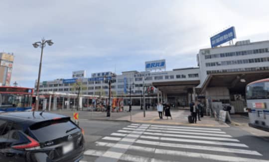新潟駅を降りたら画像の横断歩道を手前に渡ってきてください。