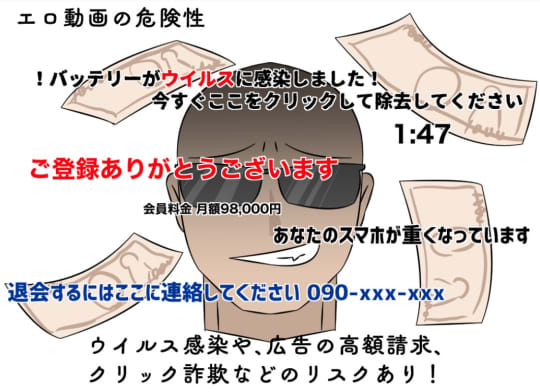 一方で、アダルト動画サイトの広告にはウイルスに感染する悪質なものが多いです。