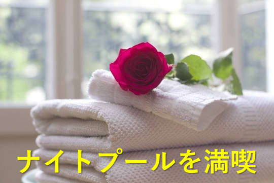 やや暗めでネオンが強めのプールはとてもいいムード。