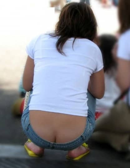 これはエロい!しかし、女性なら誰でも経験があるかもしれません。ローライズは本当にパンツやお尻が見えやすいですよね。
