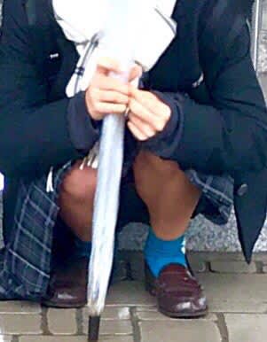 JKにはよくあるしゃがみポーズ。傘が邪魔で見えそうで見えない!そこがまたいいですよね。