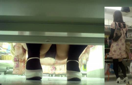コンビニなどで陳列棚がある場合には女性は無防備にしゃがんでしまいます。前に隠しカメラなどがあっても気がつくことはできません。