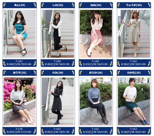 又、デブ・ブス・ガリガリ・ガン黒茶髪・疲れ顔・しゃくれ顔・据わり目・ワキガ・口臭・欠け歯・入れ歯・ため口・だみ声・極妻・タトゥー・病気もちなどは、絶対おりませんと公式HPで公言しています。