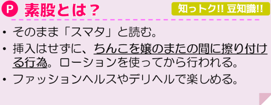 素股はデリヘルやヘルスなどでお客さんの抜きサービスでフィニッシュを迎えさせるためには必要な行為。