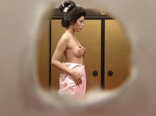 着替えの場合はふすまに穴を開けて覗くと、背徳感たっぷりなエロ光景が広がっています。
