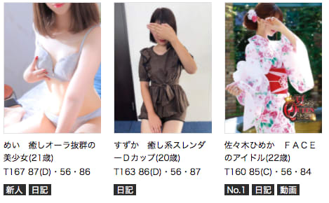 またホームページでは顔が隠されているものの、たくさん写メ日記が更新されています。嬢の体型は肌など確認することができます。どの嬢と遊ぶか迷った場合には、ぜひ嬢の写メ日記を確認してみてくださいね。