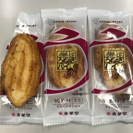 つづいてご紹介するのは、浜松を代表する銘菓、春華堂「うなぎパイ」です。昭和36年創業の春華堂は、創業よりずっと、職人による手作りを継承されています。そんな、うなぎパイを手軽にお買い求めいただけるようにと「うなぎパイミニ」が発売されたとのこと。