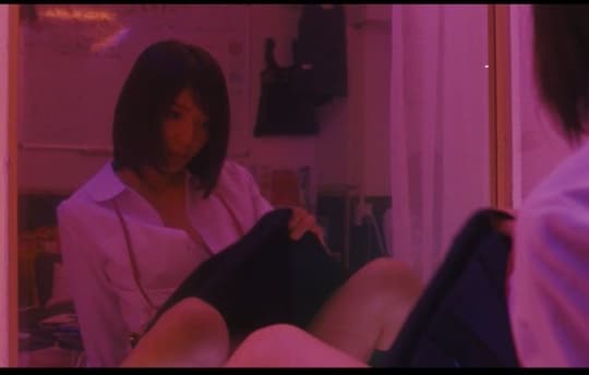 でももっとエロいシーンはその後です。マジックミラー越しにお客さんの要望に答えるのですが、お客さんからの要望で制服を脱ぐんです!