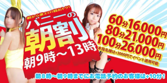 また、朝9時〜13時までは【バニーの早割】で割引があります。