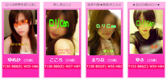 ロリータ好きにはたまらない妹系や癒し系ロリなど様々なタイプのロリっ子が在籍しています。18歳~20代と比較的若い世代の女の子が多く在籍しているので、若い女の子と遊びたい方にもおすすめのお店です。