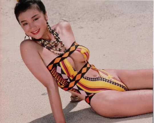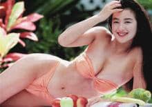 鈴木京香さんのグラビア時代の写真の多くは、この形も柄も過激な水着です。