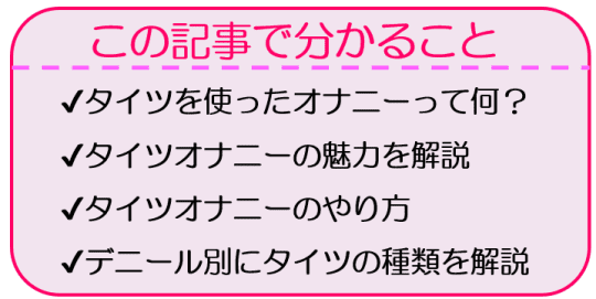この記事を読めば、タイツを使った気持ちいいオナニーの方法が丸わかりです。