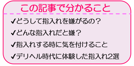 デリヘル嬢はは指入れを嫌がることがあります。その理由は痛みや衛生上の問題!無理やり力いっぱいだったり、伸びた爪で傷つけられたりして指入れをNGにする女性が増えているんです。ここでは女性に嫌われない気持ち良い指入れの方法について元デリヘル嬢が解説します。