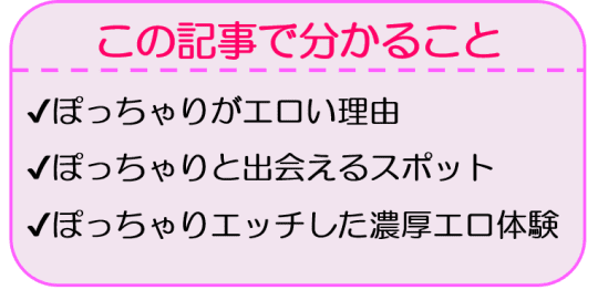 男性から絶大な人気を誇るぽっちゃり女性。そんなぽっちゃり女性のエロいイメージはどこからやってくるのでしょうか?今日は80人のぽっちゃり女性とセックスした「ぽっちゃりマニア」の私が、ぽっちゃり女性が持つエロさと出会えるスポットをご紹介します!