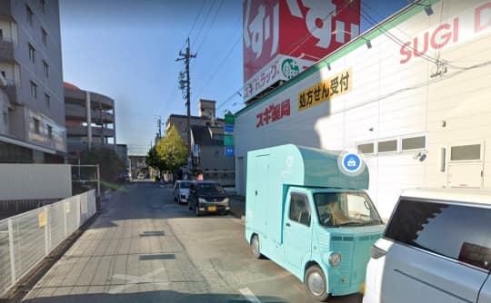 軽く左折、そして右折してスギ薬局を右手に見ながら直進します。