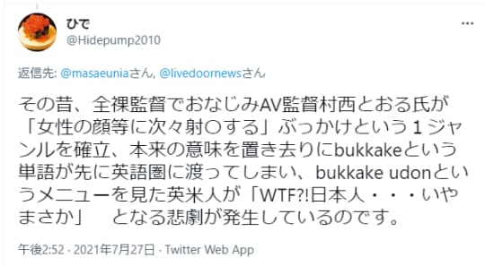 また、BUKKAKEと呼ばれて海外のポルノでも和製英語として使われています。
