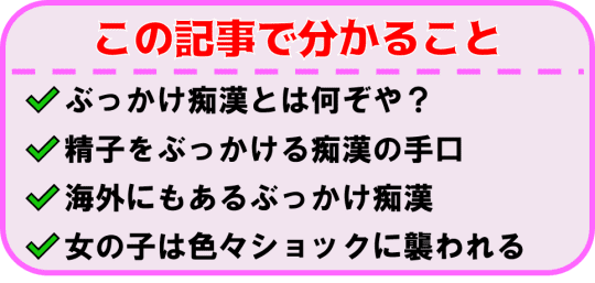 そんな痴漢の中でも、とにかく一番迷惑なのがぶっかけ系の痴漢ですよね。