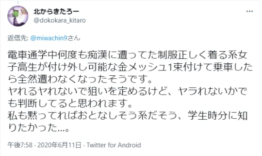 痴漢の加害者って、想像してみると、モテなくて性欲を持て余している人だとか、暗めのオタクだとか、そういう偏ったイメージになることが多いですね。そのような想像は、オタクの人に申し訳ないですけど・・・