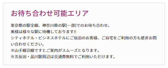 こちらは創業20年のファイナル東京グループが運営する1店舗で、五反田を中心に23区及び周辺をカバーしている安心・安全・明朗会計をモットーとした人妻デリヘルで、冒頭でも触れたようにホテルマン並みの受付・接客が特徴です。