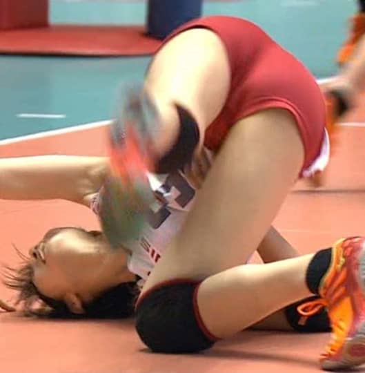 ピチピチのショートパンツのユニフォームを着て、激しく動くバレーボールにおいて、マンスジが見えるのは必定!