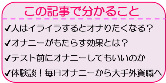 上にも書いたように、オナニーにはストレスを解消する効果があります。