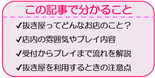 実は抜き屋って、男性なら誰もが知っているであろうあの風俗のことを指しているんです。