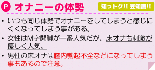 例えば床オナは感度が高いので、気持ちが良くてついクセになりがち。