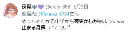 真夜中にオナニーをしてしまうと、成長ホルモンが一番分泌されるとされている『ゴールデンタイム』を逃してしまい、尚且つ深夜に大量の性ホルモンが分泌されてしまうので、結果的に身長が伸びなくなってしまう原因になります!