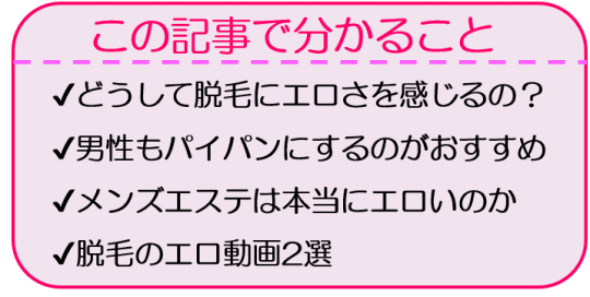 女性にとっては身近な存在である脱毛エステサロン。最近ではメンズ脱毛もごく一般的に行われるようになってきました。そんな脱毛にエロを感じる男性もいることでしょう。今回は、脱毛がエロく感じられる理由を分析。また、脱毛のエロさを堪能できるおすすめ動画も紹介します。