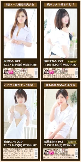 断りきれない美人マッサージ嬢たちでオススメの女の子