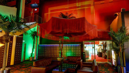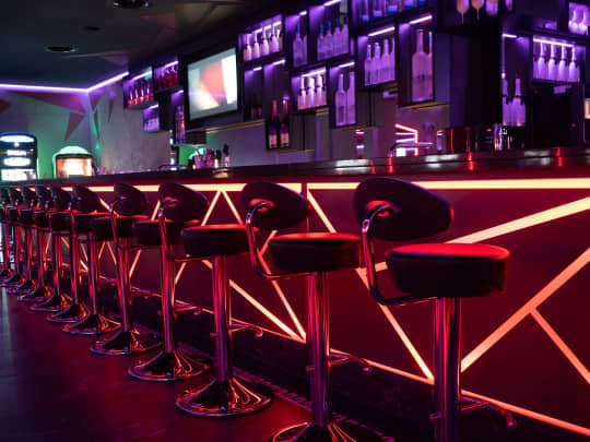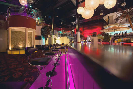 室内スペースは天井も高く、ピンク色の証明と少し大きめのクラブミュージックが流れています。