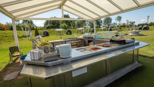 バーベキューについては、同じ時間帯に裏からスタッフが焜炉の横に材料を置きにくるので、勝手に焼いて食べて大丈夫です。