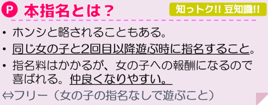 その理由は、何度か指名で呼んでいくうちに、少しずつお互いに緊張しないで会話ができるようになって来るので、エッチなことの希望を話しやすい雰囲気作りが出来るようになります。