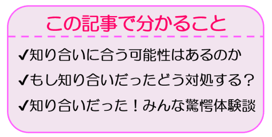 そこで今回はデリヘルで知り合いにあってしまったときの対処法や、実際に知り合いにあった人たちの体験談をまとめてみました。