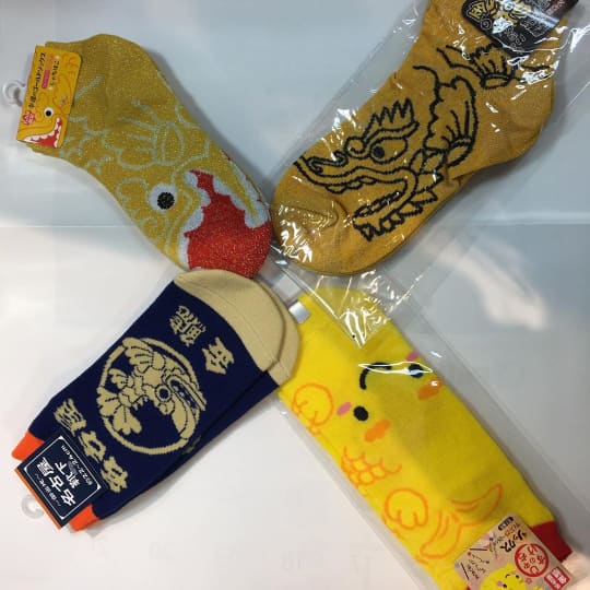街のシンボルである「金のしゃちほこ」デザインのユニークな靴下。