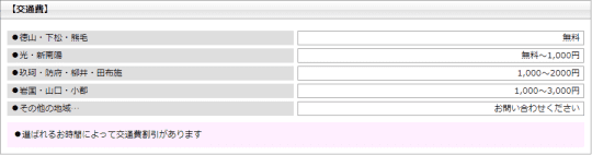 交通費は無料の場所でした。別途ホテル代がかかります。