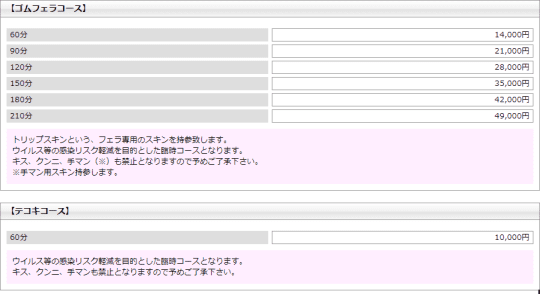 感染予防のためのコースなので、「キス・クンニ・手マン」は禁止です。