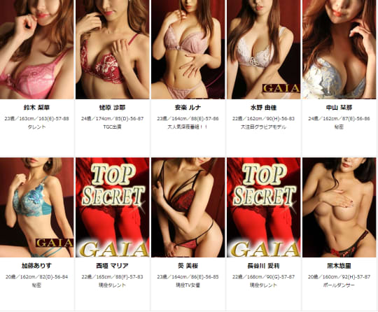 GAIA(ガイア)は、テレビなどで活躍しているような女の子が集まった店舗です。