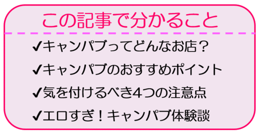 キャンパブって、どんな場所か知ってますか?キャンパブはピンサロ的な側面を持つ店で、東海地方の中でも主に名古屋でこう呼ばれています☆そんなキャンパブで遊ぶメリットや、逆のデメリットも大公開します!これから行ってみるよって人は、ぜひぜひ参考にしてみてくださーい!